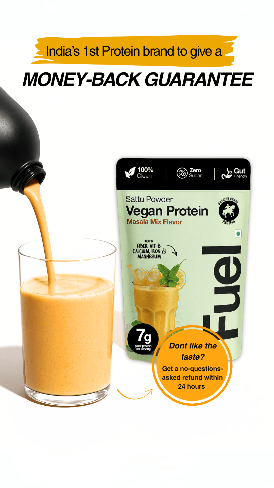 India's First Chatpata protein is here. 100% natural and clean. Made using authentic Indian ingredients. Get your money back if you don't like the taste.